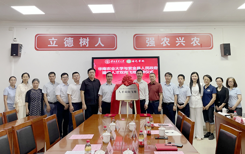 6月14日上午,学校与河源紫金县人民政府共建的“人才双向飞地”项目在园艺学院举行揭牌仪式。
