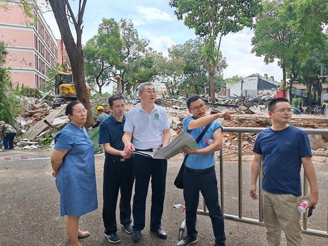 为安全推进暑期各项校园建设提升项目,7月15日上午,校党委常委、副校长杨运东带队检查学校在建民生工程及115周年校庆校园环境提升项目的安全生产工作。