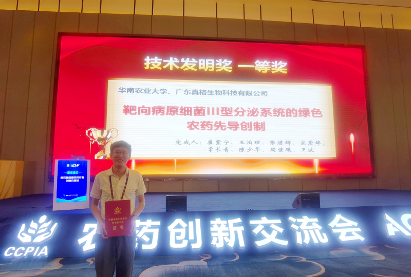 近日,“第十七届中国农药工业协会科学技术奖”颁奖典礼在安徽蚌埠举行,由我校群体微生物研究中心崔紫宁教授主持、联合广东真格生物科技有限公司共同完成的“靶向病原细菌III型分泌系统的绿色农药先导创制”项目,荣获技术发明一等奖。