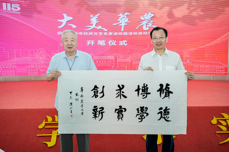 笔墨浓淡,山水尽出;方寸砚台,墨香四溢。一笔一画间,一幅幅风格各异、雅趣十足的作品跃然纸上……8月15日,华南农业大学正式启动“大美华农•文艺名家进校园”活动,近40位知名画家、书法家、作家、诗人齐聚华农,以翰墨书写百十五载办学风采,用丹青彩绘“双一流”建设画卷。