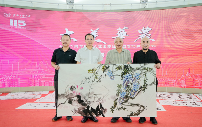 本次活动由广东省人民政府参事室(文史研究馆)、广东省文学艺术界联合会指导,华南农业大学主办,广东省中国画学会、广东省写作学会协办。广东省文学艺术界联合会党组成员、专职副主席高景海,广东省人民政府参事室(文史研究馆)党组成员黎泽林;广东省作协主席蒋述卓,中国美术家协会理事、广东省美术家协会名誉主席方土,中国书法家协会教育委员会副主任陈初生,广东省人民政府文史研究馆馆员胡江,中国书法家协会理事梁晓庄,广东省人民政府文史研究馆馆员王大鹏,广州美术学院中国画学院院长许敦平,广东省人民政府文史研究馆馆员孙戈,广东省美术家协会中国画艺委会秘书长羊草,散文家艾云等文艺界名家;学校党委书记李凤亮、党委副书记丁红星、副校长钟强出席活动。