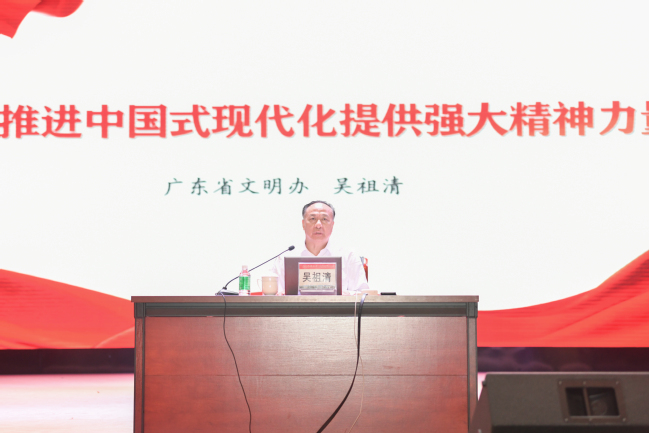 大会期间还举行了党的二十届三中全会精神专题学习暨党委理论学习中心组(扩大)学习会,广东省文明办副主任吴祖清作题为《为推进中国式现代化提供强大精神力量》的讲话。吴祖清从历史、现实、未来和实践四个维度,深刻诠释了党的二十届三中全会的重大意义;从党的二十届二中全会以来党和国家事业重大成就以及进一步全面深化改革的鲜明主题、总目标、重大原则、根本保证五个方面,全面介绍了党的二十届三中全会的主要精神;从“一牵引二创新三统筹四突出五加强”五个部署角度,全面解读了进一步全面深化改革的重大举措,并结合高校实际指出未来四个坚持方向,即坚持党的领导、坚持学深悟透、坚持攻坚克难、坚持以文化人,抓好贯彻落实。