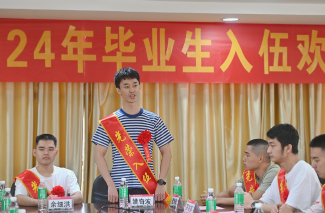 16名入伍学生代表依次发言,表达了参军入伍、报效祖国的坚定决心。来自动物科学学院的车江裔大学期间学业成绩优异、社会实践经验丰富,他表示选择入伍是自己深思熟虑之后的决定:“我希望在军营中继续锤炼自己,提升综合素质,成为一名合格的军人,为国家人民贡献自己的力量,为国防事业添砖加瓦。”数学与信息学院、软件学院的姚奇波大学期间曾是学校军训教官团的骨干,怀揣对国防教育事业的热情选择当兵,对自己的军营之旅充满期待:“希望我能把爱留在我们生活的这片祖国大地上。”