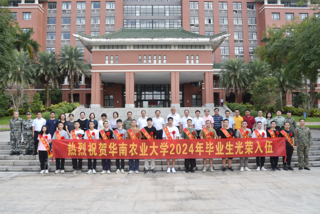 李凤亮指出,近年来,华南农业大学党委深入贯彻习近平总书记关于加强全民国防教育重要指示精神,将习近平强军思想融入学校国防教育全过程,为人民军队建设持续输送优秀青年学子,取得了一系列显著成绩。在同学们即将奔赴军营保家卫国之际,他希望大家肩扛报国“鸿鹄之志”,在实现建军一百年奋斗目标的时代重任中找准青春定位,在锻造忠诚干净担当的政治品格中全面成长成才,在传承和弘扬“丁颖精神”中奋发有为、建功立业。