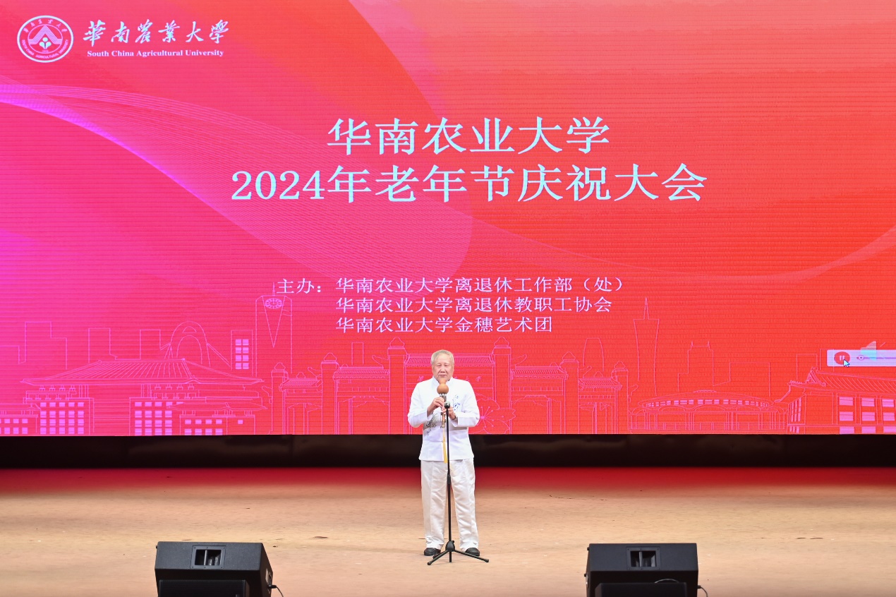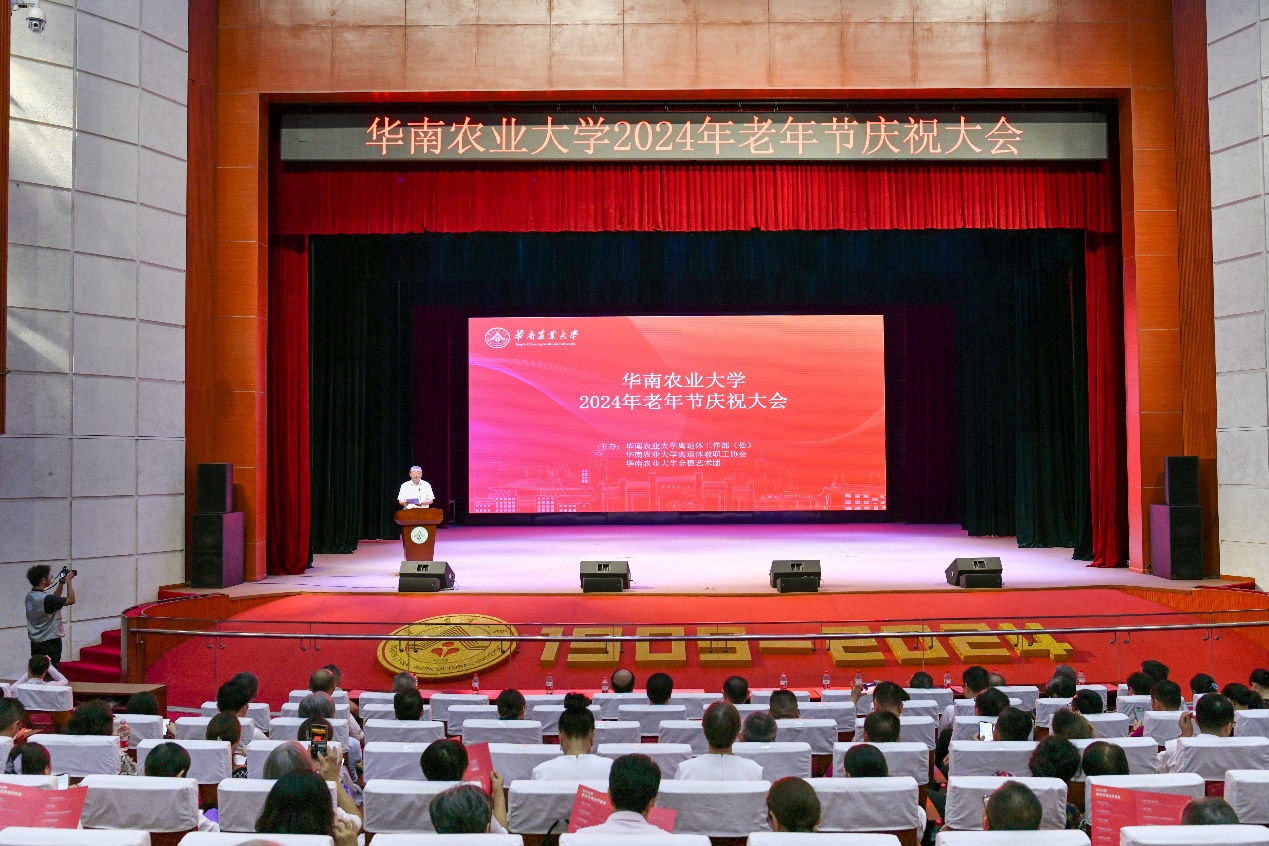 10月16日,学校在丁颖礼堂举行2024年老年节庆祝大会,全校离退休教职工欢聚一堂,共同庆祝这一属于他们的节日。学校党委常委、副校长杨运东出席大会并讲话。离退休教职工协会理事长、关工委主任骆世明,离退休教职工协会、关工委、离退休工作领导小组成员单位以及各学院有关负责人参加大会。