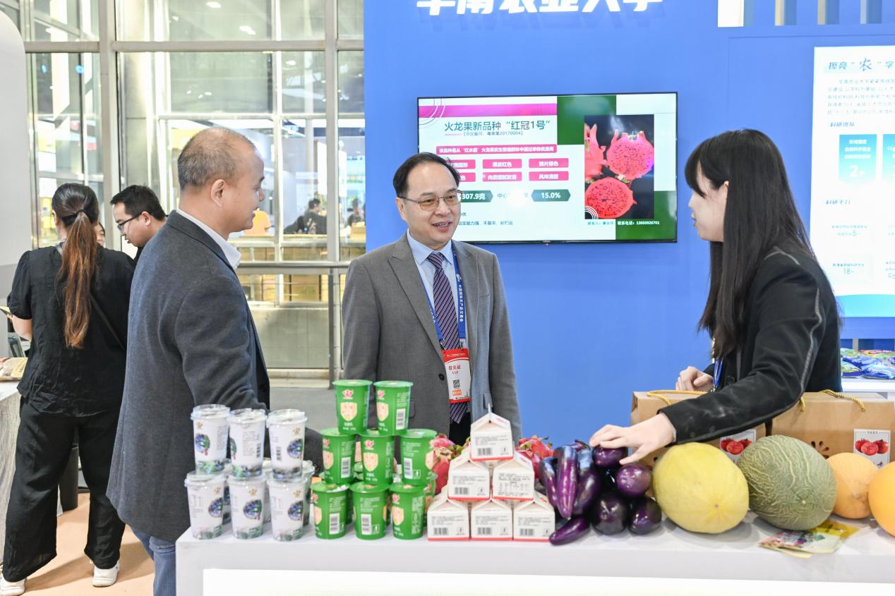 11月28日,第二十一届中国国际农产品交易会(以下简称“农交会”)在广州中国进出口商品交易会展馆开幕,第十三届广东现代农业博览会(以下简称“农博会”)同期在农交会广东馆举行。作为参展单位,我校分别在农交会、农博会开设展区,携多项科研成果亮相。据悉,我校是本届农博会唯一设有专门展位的高校参展单位。11月29日,校长薛红卫、副校长仇荣亮,中国工程院院士、工程学院教授罗锡文参加展会,与领导嘉宾和我校师生进行交流。
