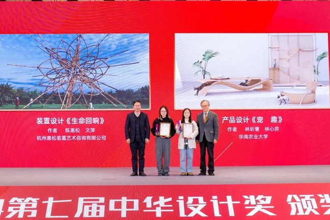 近日,我校艺术学院2021级产品设计专业学生林昕薏在杭州国际博览中心举行的第七届中华设计奖颁奖典礼上,凭借作品《宠趣》荣获产品设计组金奖。据悉,自2017年创立以来,中华设计奖已成为海峡两岸极具影响力的设计赛事之一,吸引了1300多件作品参赛。