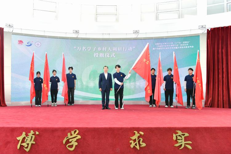 校党委书记李凤亮为“万名学子乡村大调研行动”授旗