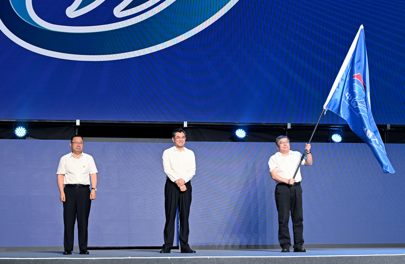 闭幕式上,校长薛红卫从省委教育工委书记、省教育厅党组书记、厅长林如鹏手中接过赛旗,正式宣告我校将承办2026年省赛。