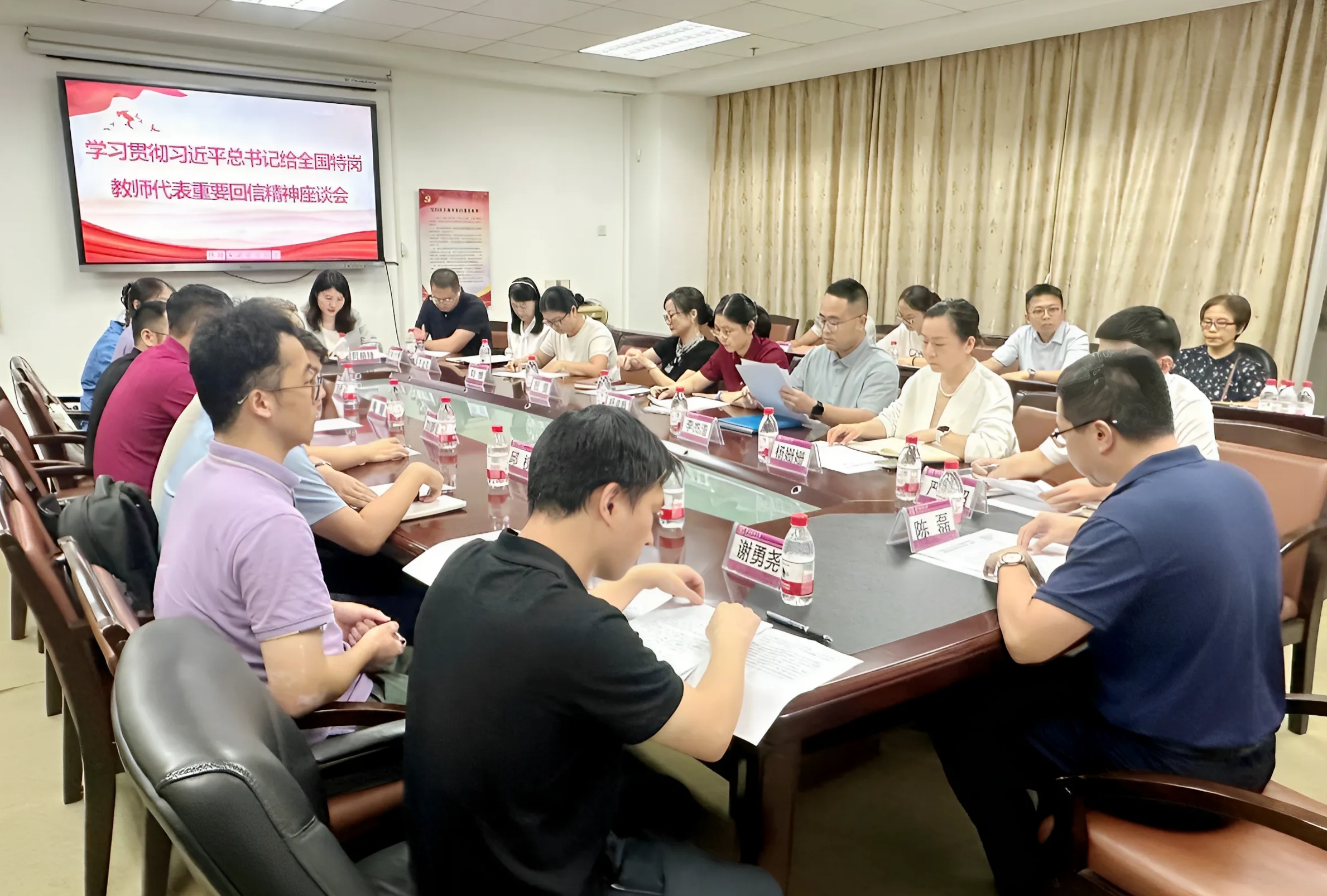 全体人员学习了习近平总书记给全国特岗教师代表重要回信全文。参会人员充分交流了学习心得,分享了教书育人故事和感悟。