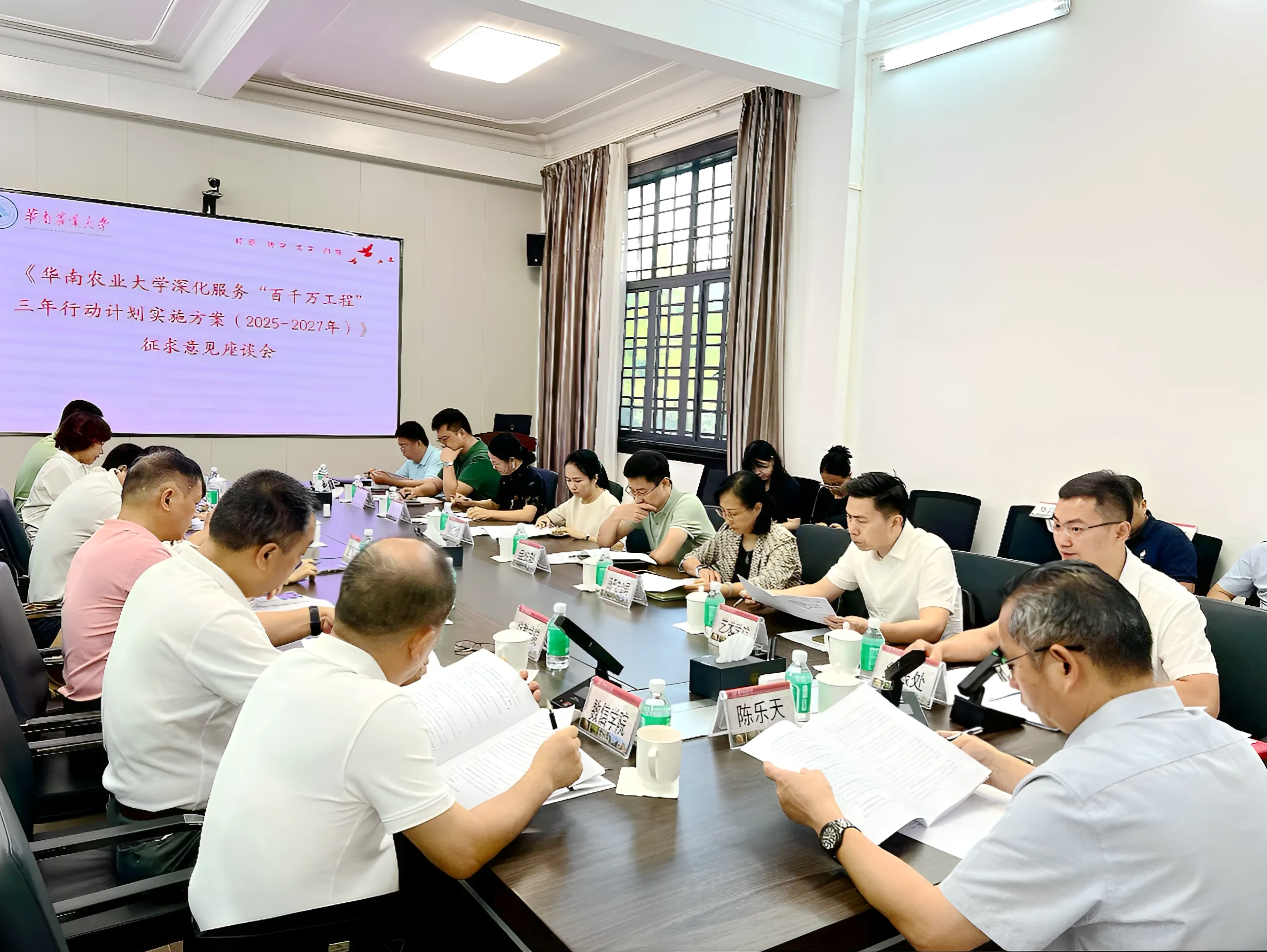 乡村振兴与社会服务处主要负责人就《华南农业大学深化服务“百千万工程”三年行动计划实施方案(2025—2027年)》相关内容作汇报,介绍了方案的起草过程、主要框架及前期意见征集等情况。