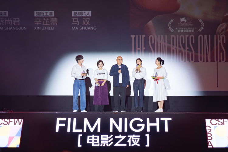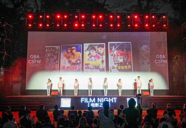 将于11月上映的影片《日掛中天》亮相“电影之夜”环节,导演蔡尚君、领衔主演辛芷蕾进行影片推介。这部广东出品、享誉国际的影片备受大湾区期待。辛芷蕾凭借在影片中的卓越表现,荣获威尼斯国际电影节最佳女演员奖。在现场主创交流中,辛芷蕾也寄语大学生们:“年轻人就是不要怕犯错,因为年轻就有无限可能。我们可能会碰很多壁,可能会走过很多错误的道路,但是我们不要怕犯错。对自己想要坚持的事情就坚持到底,我觉得就总会有回报的那一刻。”