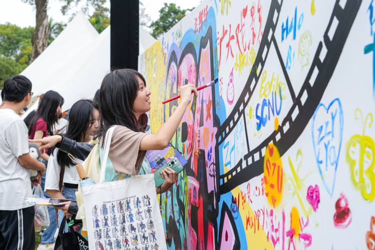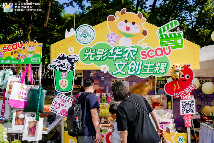 活动现场,高校与电影主题的文创市集人头攒动。本次电影之夜首次设立高校创意市集环节,来自华南农业大学、华南理工大学、广州中医药大学、广州大学以及澳门城市大学学生会电影协会的青年学子以原创设计展示电影文化的多元表达,呈现出大湾区青年的创意活力。