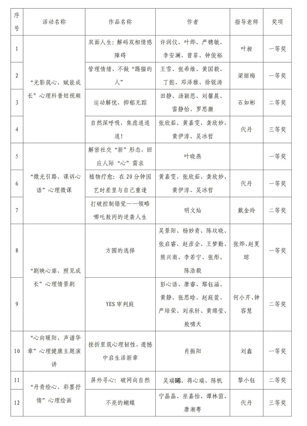 附表:广东省2025年“5.25”大学生心理健康月系列活动华南农业大学获奖名单
