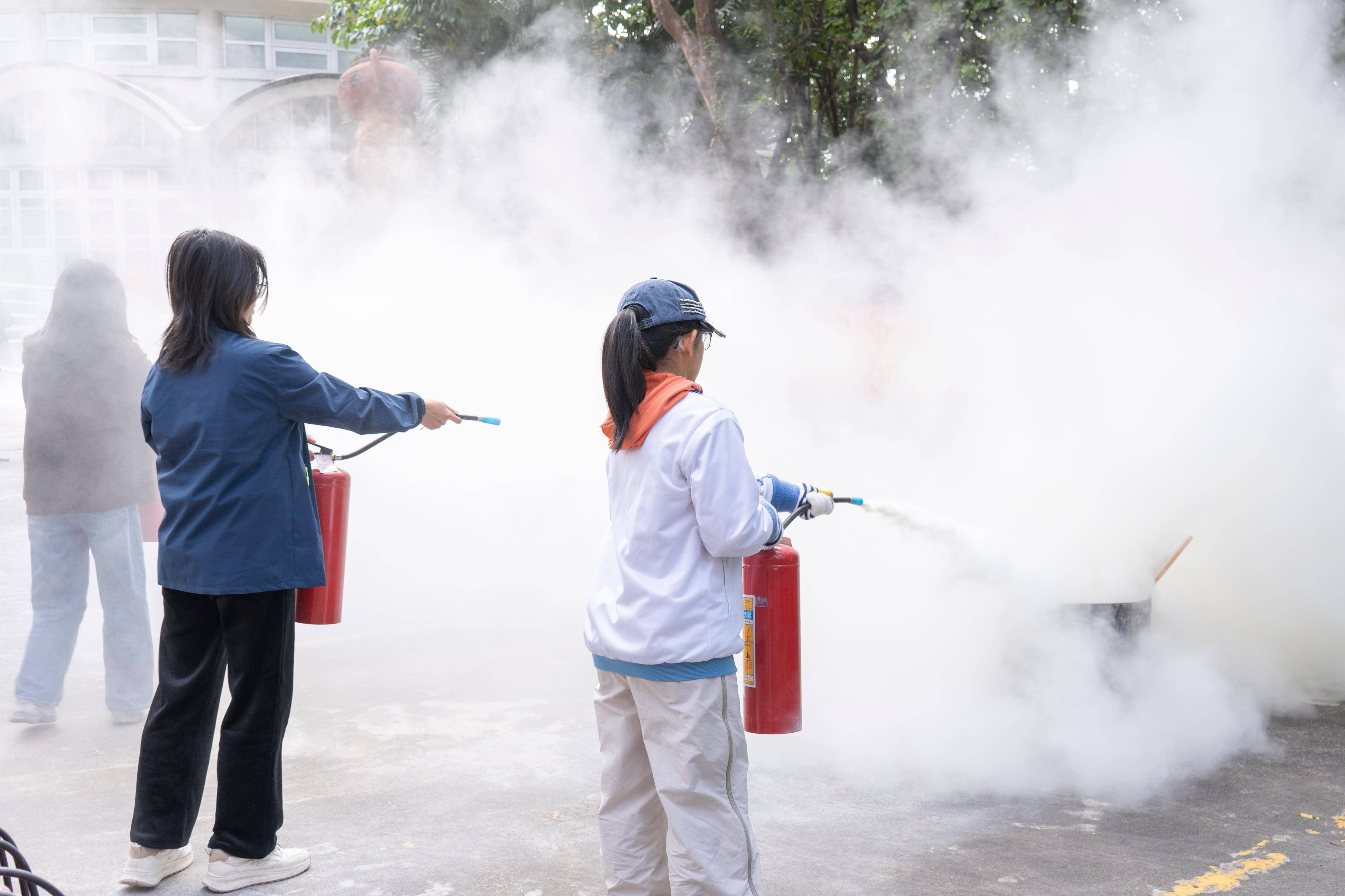 演练环节,消防员进行设备使用讲解及操作示范,资产与实验室安全管理处开展实验室危化品泄露的应急演练,校医院和军训教官团学生作心肺复苏AED急救和海姆立克急救实操展示,并在华南农业博物馆模拟火情开展应急疏散演练。演练结束后,参演师生现场参加灭火器使用、心肺复苏术等实操培训。
