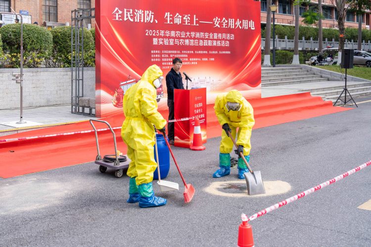 11月20日,我校在华南农业博物馆广场举办2025年消防安全宣传月活动暨实验室与农博馆应急疏散演练活动。作为学校消防安全宣传月重要活动之一,此次演练旨在加强校园安全宣传教育,提高师生安全意识。活动邀请天河区消防救援大队开展专场培训,各单位围绕“全民消防、生命至上——安全用火用电”的主题,组织消防安全专题学习与实操演练,紧盯重点领域全面开展排查隐患,切实提升火灾防控能力。副校长杨运东、陈乐天出席活动。