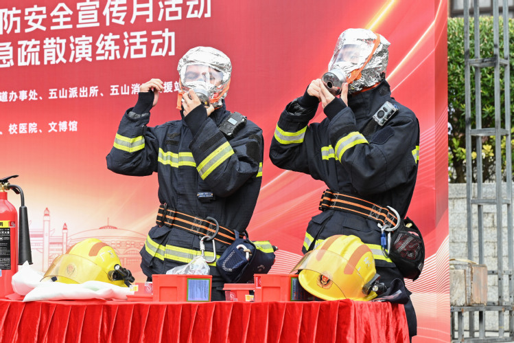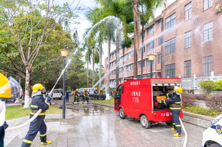 本次活动由天河区消防救援大队、天河公安分局、五山派出所、五山街道办事处指导,学校保卫处、资产与实验室管理处主办,相关职能部门协办,红棉老兵应急救援志愿服务队也参与到本次演练中。学校各单位组织代表人员现场观摩学习,活动同步线上直播,方便广大师生观看。
