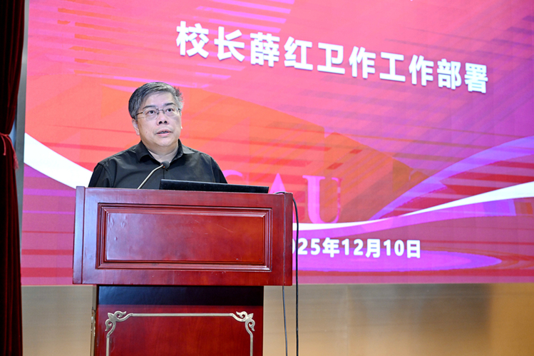 围绕不久前正式印发的《华南农业大学深化服务“百千万工程”三年行动计划实施方案(2025—2027年)》,薛红卫就如何落实组织化服务、阵地化实施、领域化推进、品牌化建设四大专项行动作具体工作部署,强调各职能部门要切实履职尽责,为学院和社会服务团队扫清障碍、提供保障,各学院要切实承担起主体责任,一体化推进人才培养、科技创新与社会服务有效贯通,打造服务乡村振兴的华农样板。他指出,要做好组织化服务,关键在于破除学科、学院壁垒,组建实质性学科交叉型社会服务团队,构建高效协同、激励有效的内部治理生态,将学校的科技和人才优势有效组织起来,形成服务乡村的强大合力;开展阵地化实施,必须深耕区域,通过打造高显示度的样板区、示范平台和帮扶模式,形成一批可持续、可复制、可辐射的服务根据地;深化领域化推进,要围绕广东现代农业发展的重点领域和产业链关键环节,发挥学校多学科综合优势,提供从技术攻关到产业提升、从生态建设到文化传承的系统性解决方案;推进品牌化建设,要着重将服务“百千万工程”中的先进经验和典型事迹凝练升华,进行广泛传播,打造一批叫得响、立得住、传得开的社会服务品牌,提升学校的社会美誉度和影响力。