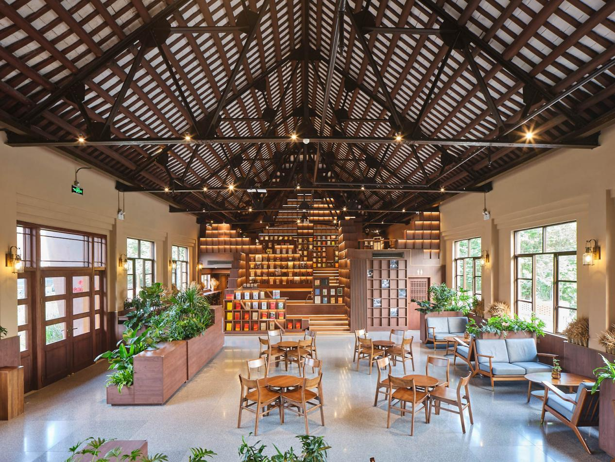 整体设计上,项目协调乙组膳堂历史环境的原有风貌,延续原有建筑形式语言,以红砖作为主要设计材料,屋顶为三段式庑殿顶、绿色琉璃瓦铺设,屋架为芬克式三角形钢屋架、檐口采用双层椽子与望板搭设,梅花丁砌法清水红砖墙与水磨石地面,展现了原建筑气势非凡、中西合璧的建筑风貌特点。