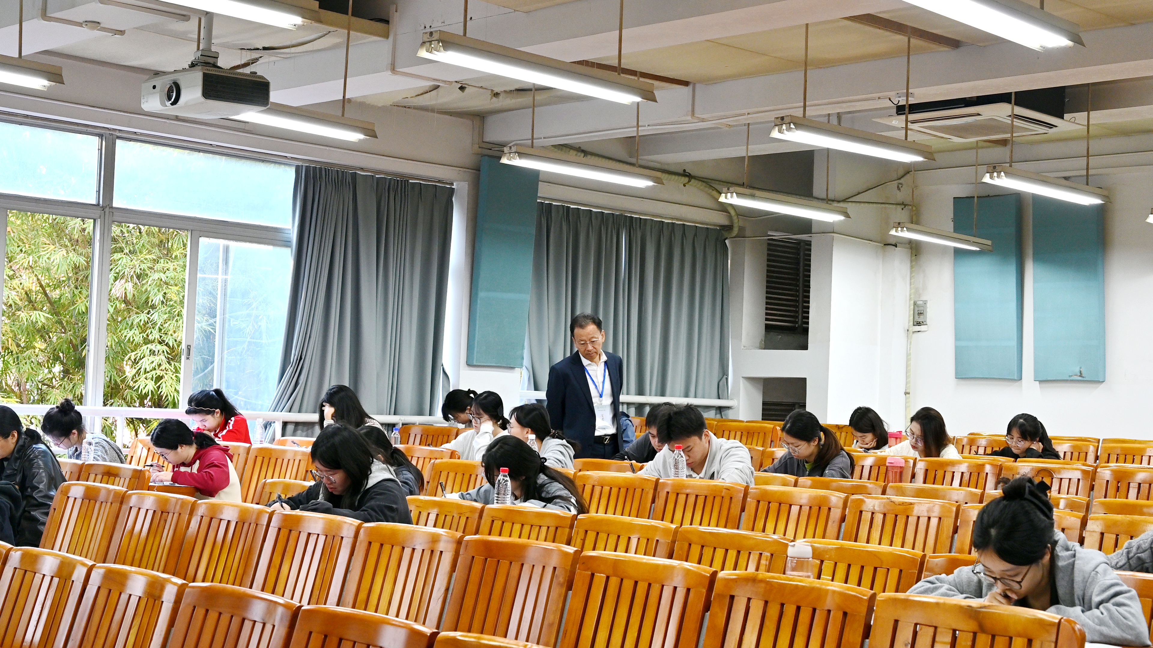 考试期间,华农党委书记李凤亮、副校长温小波,广东省教育考试院院长李向明、副院长周旭等一行深入考点一线,在考场大楼,通过教室监控系统巡查、考场AI智能巡查系统及现场巡视,深入检查考场环境秩序、考风考纪情况、监考教师职责履行等方面情况,听取了本次考试的工作汇报,对考试组织工作进行了巡视指导。