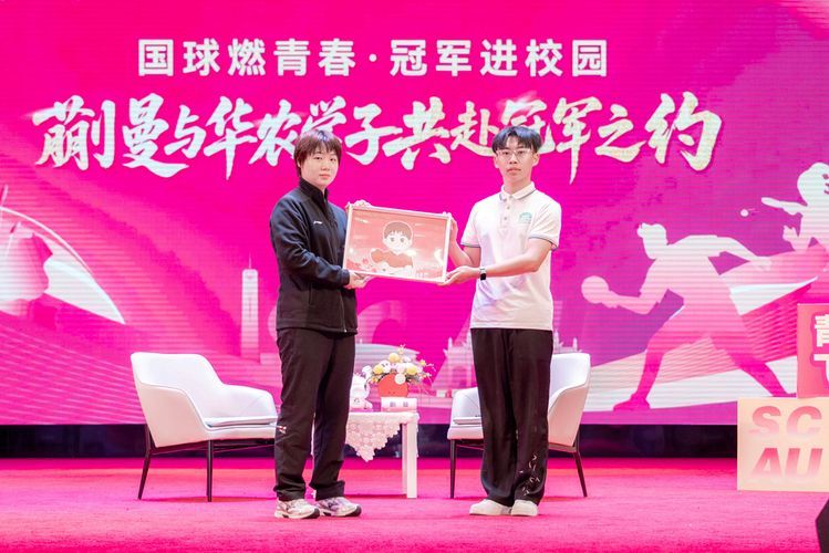“这既是一次体育精神的传承之旅,更是一堂生动鲜活的育人实践课。”李凤亮表示,作为世界冠军,蒯曼在逆境中坚守、在竞争中突破、在奋斗中成长的优秀品质,值得每一位华农人学习。李凤亮介绍,作为首批全国健康学校建设单位,华农始终坚守“健康第一”的教育理念,将立德树人与健康校园建设深度融合。近年来,华农持续加大健康校园建设力度,新落成综合体育馆并成为十五运会及残特奥会赛事场馆,华农学子也在各类体育赛事中屡创佳绩。“期待未来能与蒯曼在体育教学改革、校园体育文化建设、人才培养等方面持续深化合作,让国球精神在华农落地生根、绽放新花。”