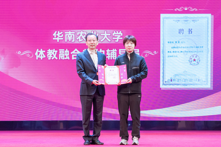 为深化全国健康学校建设,推进立德树人机制综合改革,12月22日,“国球燃青春·冠军进校园”主题活动在华南农业大学举办。中国女子乒乓球运动员、世界冠军蒯曼走进华农校园,与师生分享成长故事、切磋球技、亲切互动,并受聘为华农体教融合特约辅导员、乒乓球队名誉教练。
