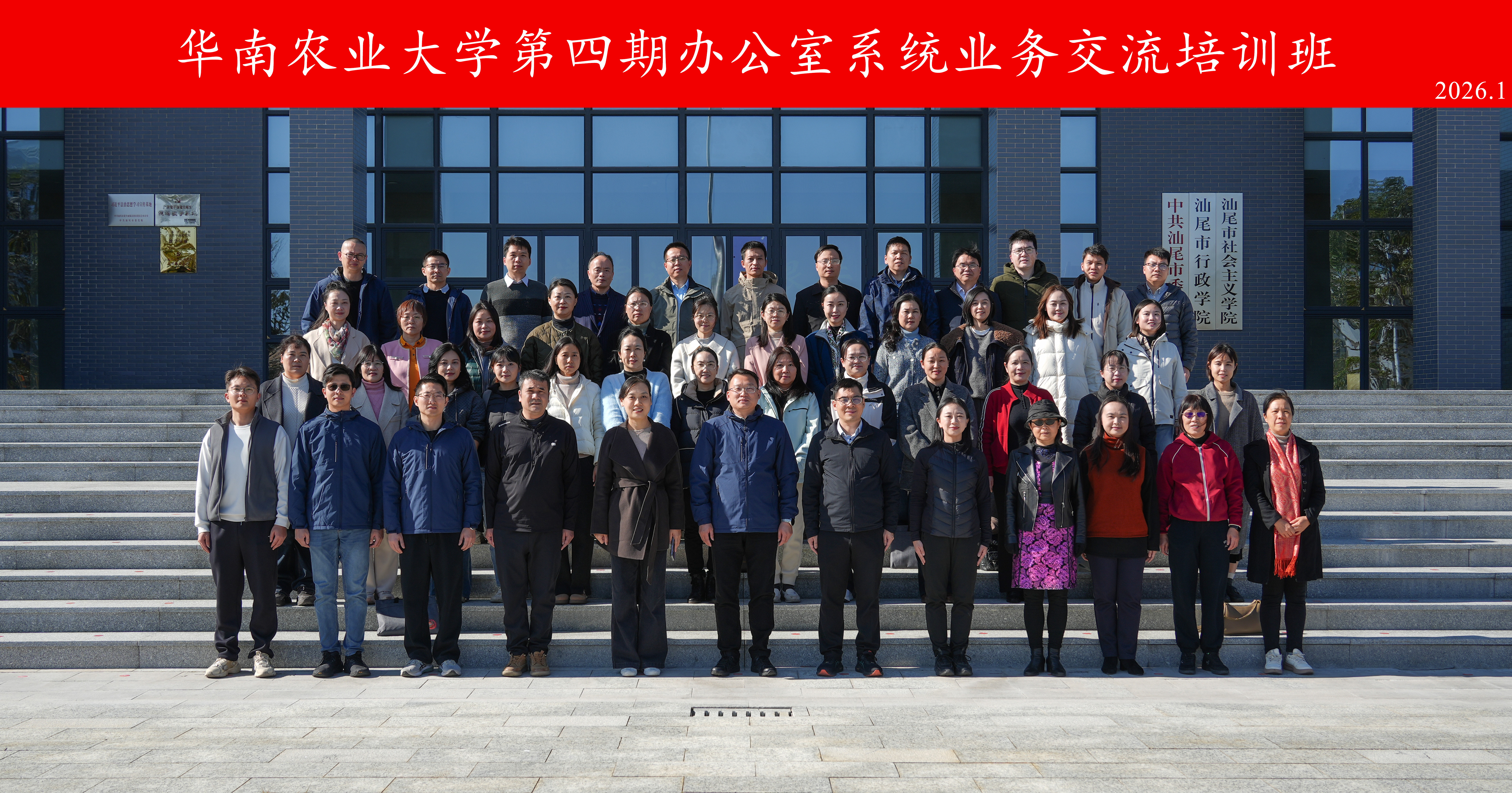 1月8日至10日,华南农业大学第四期办公室系统业务交流培训班在中共汕尾市委党校举办。全体参训学员通过专题授课、红色研学、素质拓展、交流研讨等形式,学有所获、研有所得、练有所成,培训取得圆满成效。