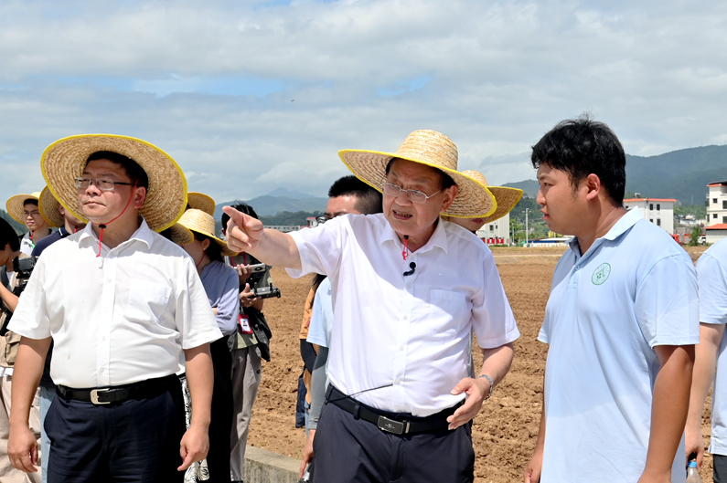 罗锡文院士(中)在无人农场指导生产