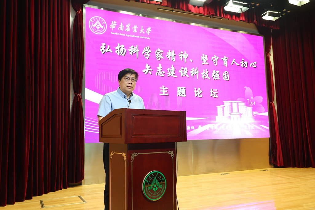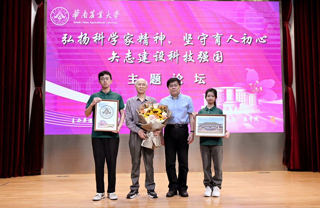 薛红卫表示,科学家精神是科技工作者在长期实践中积累的宝贵精神财富,百年来华农始终心怀“国之大者”,与国家发展同频共振,一脉相承的科学家精神,造就了华农“一门三院士”的佳话。刘耀光院士师从卢永根院士,1996年放弃国外优越条件回到母校,用30年的坚守生动诠释新时代的科学家精神。他指出,加快建设科技强国,实现高水平科技自立自强,迫切需要每一位科技工作者传承弘扬科学家精神,将个人理想融入国家发展大局,当前,学校正处在谋划推动学校“十五五”及未来发展,攻坚跨越“双一流”建设的关键时期,希望全校师生以老一辈科学家为榜样,在科研攻关中勇攀高峰,在教书育人中甘为人梯,在服务国家中实现价值。