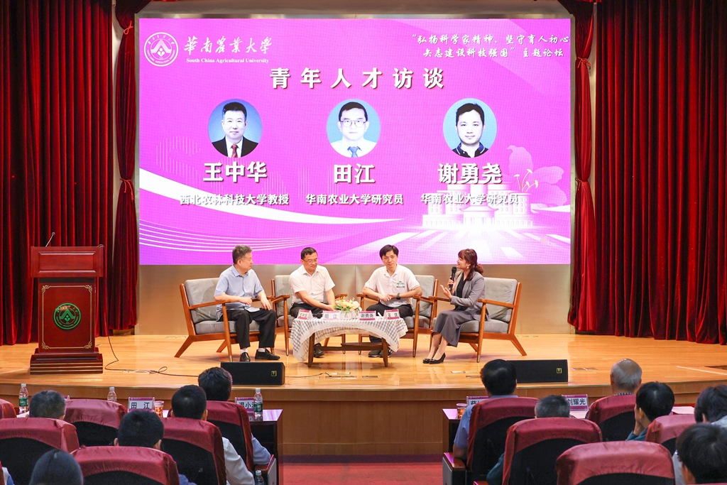 在随后的访谈对话环节,三位在刘耀光院士及其团队影响下成长起来的青年人才代表——西北农林科技大学农学院教授王中华、华南农业大学资源环境学院研究员田江、华南农业大学农学院研究员谢勇尧,分享了与刘院士相处的难忘点滴与科学家精神的薪火相传。
